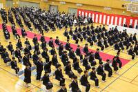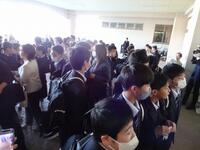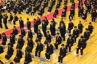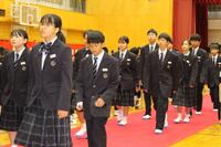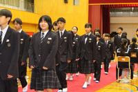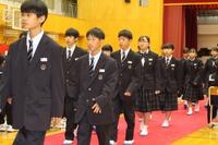 教室に入ると短い時間で式についての確認事項。そして、いよいよ入学式です。まだ慣れない制服に身を包み、さすがに朝よりは緊張した面持ちで入学式に参加する新入生が多く見られましたが、「新入生呼名」では、どの新入生も立派な素晴らしい声で返事をすることができました。
