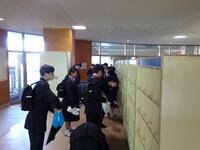 昇降口でのクラス発表。昨年度完成した新しいデザインのまだ真新しい制服。慣れない環境に緊張した顔やこれからの生活を楽しみにしたようなにこやかな笑顔がそこにはありました。