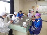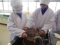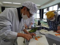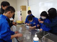 水耕栽培で切った野菜を今度は調理実習で使いました。お味噌汁、野菜炒め、ふろふき大根を作りました。お味噌汁は昆布とかつお節からダシを取り、旨味のあるお味噌汁になりました。野菜炒めもそれぞれの野菜のよさを生かし、ちょうどよい味付けでした。ふろふき大根はほくほくで、みそ砂糖が大根の味を引き立ててくれました。先生方にも試食をしていただき、みんなでおいしく食べました。