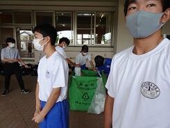 朝登校する際に、生徒が中心になってリサイクル品回収を行っています。5日は2学期最初の回収日でした。係の生徒が登校する生徒に元気に挨拶をしながら、回収活動を行っていました。