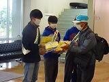 始めに10時から啓発活動のグッズを文化会館と公民館の入り口に分かれて来場者に配布しました。「犯罪のない社会を作る活動にご協力ください」「社会を明るくする運動の啓発活動です」と声を掛けながらグッズを来場者に手渡しました。雨のため来場者も少ないのではと心配されましたが、30分程で配布が完了。と見ると、男子の生徒が福祉まつりのバザーで買い物をした高齢者の方の荷物運びを手伝っていました。それを見ていた保護司の方が「自分たちからやっているのが素晴らしいね」とおっしゃっていました。