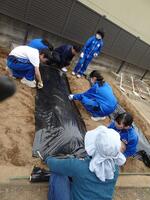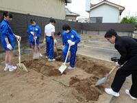 1・2時間目に畑づくりの続きをしました。今回は、畝づくり。植える苗の数や成長した時の大きさを考えながら配置しました。最初は畝の形が歪んでいましたが、「見た目もきれいに」を目標にみんなで手やスコップを使って整形しました。これから2週間ほど土と肥料をならし、質のよい土を作ります。