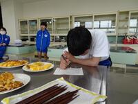 3・4時間目には、4月28日(火)の授業参観で作る卵焼きの練習をしました。今回の挑戦は「丸いフライパンで卵焼きを作る」です。完成後は試食を行い、活動の振り返りをしました。よい点は「上手にひっくり返せたこと」「味付けがちょうどよい」などたくさんありました。改善点は「具材を入れたときにひっくり返しにくいから、具材を小さく切る」や「フライパンに入れる卵の量を調整する」などが挙げられました。振り返りを通してそれぞれが卵焼きに入れる具材や量を見直し、本番に臨みます。