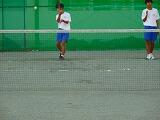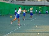 女子テニス部も個人戦で県大会に出場するペアがあります。フォームや打点を確認して、サーブ練習です。1年生大会も控えていて顧問の先生も熱心に指導しています。