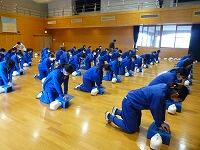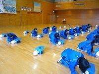 2年生が心肺蘇生法の研修を一中生と一緒に受けました。