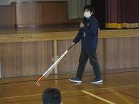 からのお話を頂きました。そして、実際にアイマスクをして歩いてみました。障害物