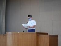第一学期終業式 投稿日時 : 2021/07/20 藤岡二中管理者 7月20日(火) 第一学期終業式 70日間の1学期が終了しました。大きな事故もなく、第一学期が終了した こと、保護者の皆様、地域の方々には感謝申し上げます。 終業式では、各学年の代表生徒が一学期の反省と今後の意気込みを堂々と 発表してくれました。42日間の夏休みを有意義に過ごし、第二学期からの 更なる飛躍を期待します。