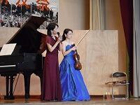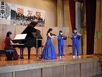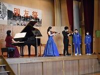 音楽鑑賞会 投稿日時 : 2021/11/08 藤岡二中管理者 11月5日(金) アウトリーチ事業でヴァイオリストの前田みねりさん、ピアニストの 高際悦子さんをお迎えして、素晴らしい演奏を聴くことができました。 ふだん、生でこのような演奏を聴くことができないので、生徒にとっ ては素晴らしい経験になりました。生徒の代表がヴァイオリン演奏体験も できました。