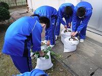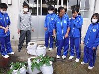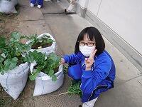 2年生の技術の授業で大根を栽培しています。ずいぶん、おおきく