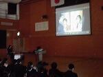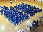1年生が保健師さんの話を聞いているころ、2年生は立志式のときに歌う学年合唱の練習を体育館で行っていました。