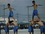 ソーラン節から組体操、白虎隊へと進んでいき、最後の締めは「三色対抗リレー」です。