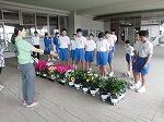 花センターの職員さんに挨拶をして説明を受けた後、1種類ずつ教室に持っていきました。