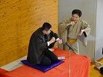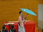 【落語体験】お手本の後、3年生の代表者が落語に挑戦しました。
