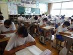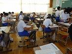 2年生は、教室で夏休みの生活について、クラスごとに確認し、夏休みのしおりを使って計画を立てていました。あるクラスでは、夏休み中の生活の心得を順番に生徒が読み合い、夏休み中に事故や事件に巻き込まれたり、誘惑に負けて問題行動を起こしたりしないように丁寧に確認していました。夏休み中に、3年生から2年生へ部活動のバトンタッチが行われます。3年生が築いてきた伝統を受け継ぎ、乗り越え、次の伝統を築いていくスタートが、多くの部で夏休み中に始まります。中堅学年として自覚を持ち、次に学校のリーダーとして学校を支えていくのは自分達だという気持ちを持って頑張ってほしいと思います。