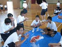 いました。見事に割れたスイカはグループ全員で分け、仲良く味わいました。