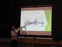 生徒たちは、貴重な写真とともに遊水池ができた経緯や