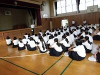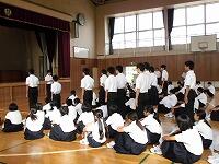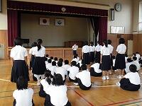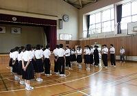 本日の朝会では、地区新人大会の控え、選手激励会が生徒会主催で行われました。