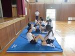 本日の3,4時間目を使って体力テストが行われました。体育館では握力測定、上体起こし、長座体前屈、反復横とび、立ち幅とびの5種目が、校庭では50m走、ハンドボール投げの2種目が行われました。