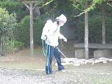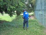 本日はPTA役員2名、学校職員4名の計6名で作業を行いました。本日もよく晴れて暑い中、除草剤散布だけではなく、機械による草刈りや植木の剪定などもやっていただきました。大変ありがとうございました。