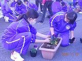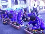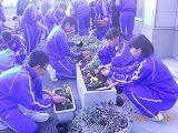 11月28日(月)の放課後、校内の緑化および環境整備活動の一環として、全校生徒で「パンジー」をプランターに移植しました。5月に「サルビア」などを植えたのに引き続き、2回めの活動になります。
