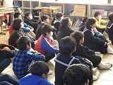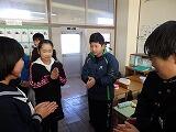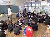 その後、グループ毎に質問タイムを設け、小学生の質問に一生懸命答えることができました。最後には、お互いに向かい合って挨拶をしました。中学生の迫力のある挨拶に小学生は圧倒されたようでした。