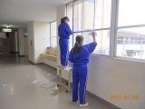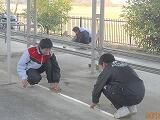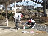 お世話になった学び舎への感謝を込めて、廊下や窓ガラスの汚れ落としや、自転車置き場の停止線のペンキ塗りを行いました。もうすぐ卒業です…。