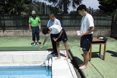 体育委員長と生徒会長が初泳ぎをしました。