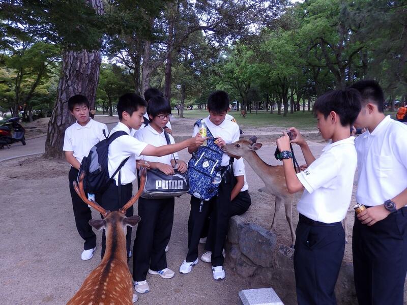 奈良公園では、鹿せんべいを買い、鹿と遊びました。
