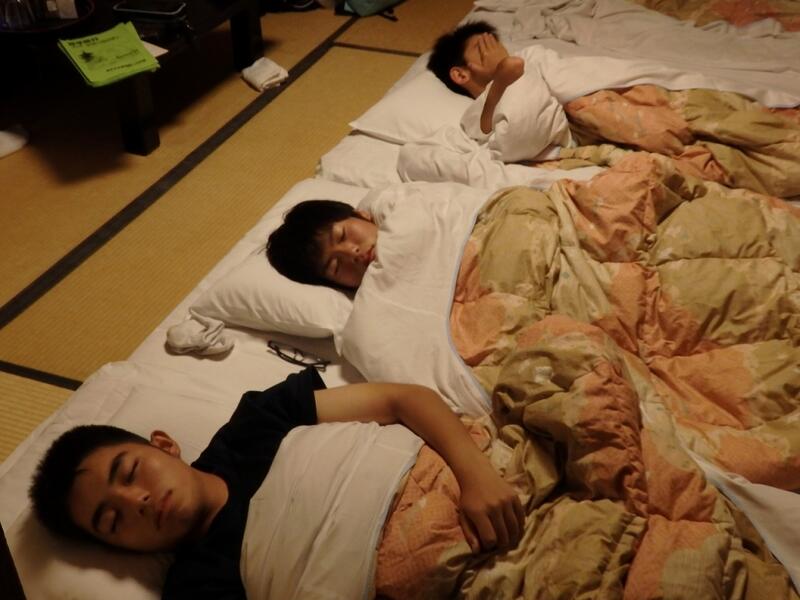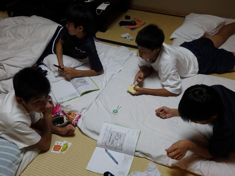 夕食後は入浴、班長・係長会議を行い、就寝準備です。一日の疲れと満腹感で消灯時間前に寝ている人も・・・