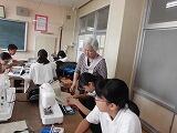 家庭科の授業でボランティアの方々に来ていただき、ミシンの使い方を教えていただきました。