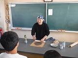 平井焼講師の田部井さんより、説明を受け生徒は思い思いにお皿やカップなどを製作