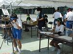 3人の先生が両手に紅白旗を持ち、スタート後の笛の合図でどちらかを上げます。
