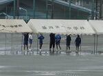 トラックに少し水が残っていたので、フィールドでできる競技を最初に行いました。