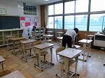 どのクラスも机の間隔を最大限に空けるとともに、教卓の前は二つ分の席を空けています。