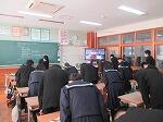 「開式の言葉」と「学校長式辞」。教室ではその様子がモニターに映し出されます。