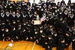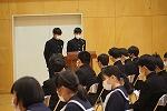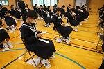 学校長式辞 耳を傾ける生徒たち 県知事メッセージの代読