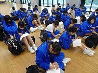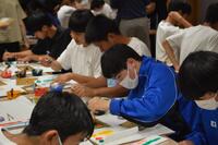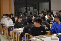 作業をする中で、中学生が高校のことを聞いたり、高校生が中学校生活のことを聞いたりする姿も見られ、互いに交流を図りながら和やかな雰囲気で学習が進みました。