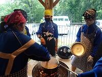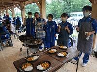 朝食、昼食、夕食ともに、カツ丼にナゲット、オムレツ、ポテト、ウインナー、春巻きなど子どもたちの好きなものがメニューに並びます。学校給食とは違うメニュー、何より活動のあとでお腹が空いたのか、2日間ともおかわりの列が絶えませんでした