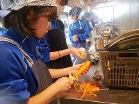 茹でたときに生地が膨らむため、細く切るようにと指示が!ある班には細く均一にきれいに切る達人がいました・・・!