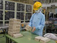 好みの色に焼き上がったスギ板を、たわしや布を使って磨いていきます。磨く度にツヤが増していくので、仕上げに力が入ります。