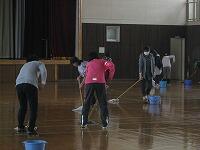 体育館の掃除、フロアのワックスがけ、校舎内のトイレ掃除など、6年間お世話になった学校を心をこめて親子できれいにしました。ピカピカになった体育館で、19日には卒業式を行うことができます。