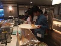 おはようございます。修学旅行2日目の朝、ホテルで美味しい朝食をいただきました。パンのおかわりもして、サラダも完食。あいにくの雨ですが、みんな元気に楽しんでいます。