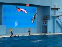 映像と音楽、実際のイルカのジャンプがリンクするよう工夫されているショーに、みんな驚いていました。