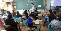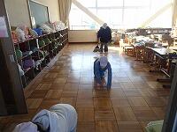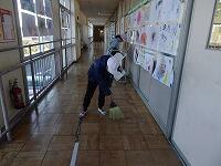 今週はきれいな学校週間です。今日の水道の水は冷たかったですが、雑巾をよく絞って、教室や廊下も水拭きをしています。床ふき後の雑巾の汚れ、消し跡が残っていないピカピカの黒板、腰を曲げて箒を上手に使って集められたたくさんの砂埃、とってもきれいになりましたね。清掃後の反省でもよい振り返りができました。ご苦労様でした。