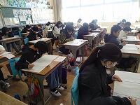 今日は、1年間の学習の成果を確認するため、全学年で、学力テストを実施しました。教科は、国語と算数です。いつものワークテストより問題数が多く、集中して取り組まなければ、時間内に終わらないかもしれません。どの教室も、真剣にテストに取り組んでいました。頑張りました!