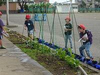 花壇では、キュウリを育てます