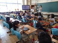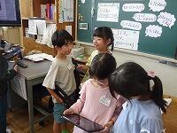 今日の学習は、「友達に知らせたい場所を伝え合おう」というめあてでした。おうちの方にも協力していただき、タブレットで紹介したい場所を事前に写真で用意していました。ありがとうございます。子どもたちは、たくさんの先生たちの前でも、紹介したくてたまらないといった様子で、次々と巧みにタブレットを操作しながら、紹介し合っていました。一斉に発表するときの励ましや賞賛の拍手のある温かい学級で、子どもたちは安心感をもって、意欲的に楽しく学習していました。すばらしい授業をありがとうございました。参観した先生たちもよい学びとなりました。これからのまちたんけんがますます楽しみですね。