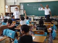 今日のポイントは、2画目の「おれ」です。横画を描くときと同じように、一度筆先をトンと止めてから縦画を書くのがコツです。斜めにかっこよく書けたかな?ボランティアの先生方は、授業後に「上手にかけていました」「楽しかったです」とおっしゃっていました。「ありがとうございました」子どもたちも心を込めて、感謝の気持ちを伝えていました。