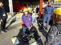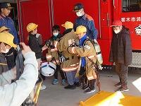 最初に、栃木消防署藤岡分署を見学しました。ちょうど、歩いて向かう途中に救急車が通りました。救急隊の方々は出動されていました。水槽付ポンプ自動車や、水上バイクに乗せてもらったり、ホースをもたせてもらったり、体験させていただきました。「服が重かった」「ホースもすごく重いのになぜ仕事ができるのか」消防隊の方は、たくさんご飯を食べて、トレーニングすると教えていただきました。驚いたことがたくさんありました。