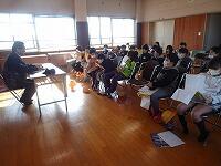 実際におやつを食べるときの望ましい量を、本物のポテトチップスで図ったり、動画やクイズで大切なことを教えていただいたりしました。お土産もたくさんいただきました。1回のおやつでは食べすぎの量になりますね。今日、教えていただいたことをぜひ、おうちの方にも伝え、生活に生かしてください。